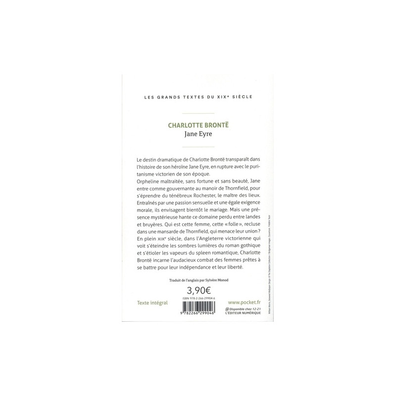 Mais une présence mystérieuse hante ce domaine perdu entre landes et bruyères. Qui est cette femme, cette "folle", recluse dans une mansarde de Thornfield, qui menace leur union ? En plein XIXe siècle, dans l'Angleterre victorienne qui voit s'éteindre les sombres lumières du roman gothique et s'étioler les vapeurs du spleen romantique, Charlotte Brontë incarne l'audacieux combat des femmes prêtes à se battre pour leur indépendance et leur liberté.