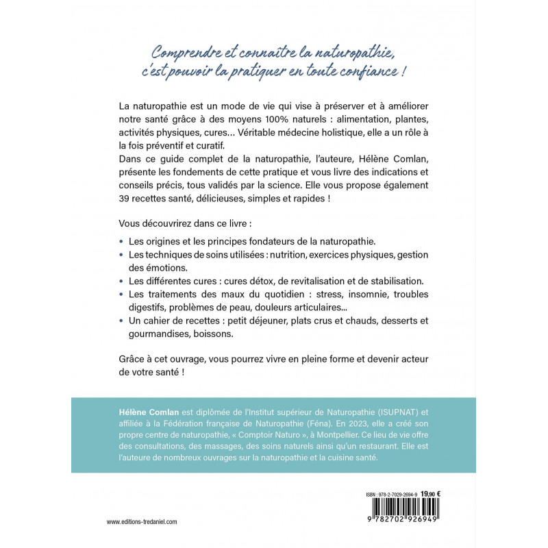 Un livre préventif, éducatif et pratique sur la naturopathie, une médecine préventive fondée sur l'hygiène de vie et complémentaire à la médecine traditionnelle. Hélène Comlan, naturopathe et auteure de nombreux livres, nous éclaire dans cet ouvrage sur les causes des maladies, et nous donne les clés les les prévenir et les traiter de manière naturelle. La première partie présente et définit les bases de la naturopathie : ses origines, les principes fondateurs et les techniques de soins utilisées.