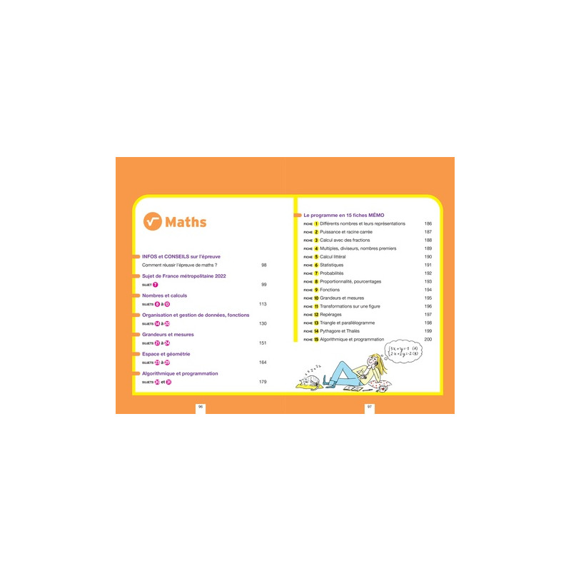 Un ouvrage tout-en-un de préparation aux cinq épreuves du brevet 2024 : les quatre épreuves écrites (Français, Maths, Histoire-géographie EMC, Sciences) et l'épreuve orale. 100 sujets, leurs corrigés et des conseils de méthode. Des sujets pour les 4 épreuves écrites : Français, Maths, Histoire-géographie EMC, Sciences - L'ouvrage comprend des sujets tombés en 2023 et des sujets complémentaires. - Chaque sujet est associé à : - une aide pour analyser l'énoncé - des conseils de méthode - un corrigé détaillé Une section consacrée à l'épreuve orale - L'élève trouvera également des simulations d'oral correspondant aux différentes formes de l'épreuve : soutenance d'un projet, compte-rendu de stage ou présentation d'une œuvre d'art.