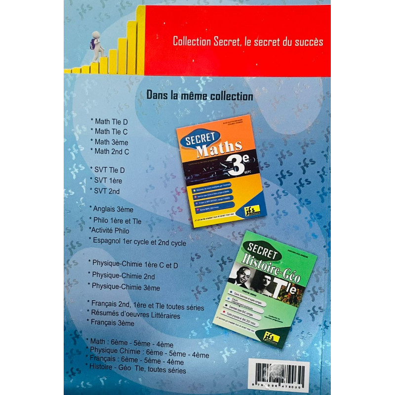 ‘’ SECRET‘’ est une collection d’annales au Programme interafricain allant de la 1ere à la Terminale. L’ouvrage met en avant les cours, les exercices et les sujets corrigés