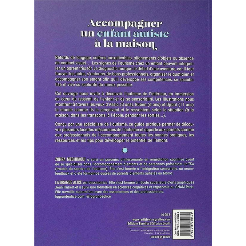Cet ouvrage nous invite à découvrir l'autisme de l'intérieur, en immersion au coeur du ressenti de l'enfant et de sa sensorialité. Les illustrations nous montrent à travers les yeux d'Assia (3 ans), Ruben (6 ans) et Djibril (11 ans) le monde comme ils le perçoivent et le ressentent, selon la situation (à la maison, dans les transports, à l'école, pendant les sorties...). Conçu par une spécialiste de l'autisme, ce guide pratique permet de découvrir plusieurs facettes méconnues de l'autisme et apporte aux parents comme aux professionnels de l'accompagnement toutes les bonnes pratiques, les ressources et les tips pour développer le potentiel de l'enfant.