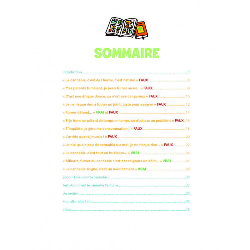 Ce livre te donnera toutes les bonnes raisons de ne pas commencer à fumer ou t'aidera à arrêter. "Le cannabis c'est de l'herbe, c'est naturel", "C'est une drogue douce, ce n'est pas dangereux...", "Je ne risque rien à fumer un joint juste pour essayer..." En décryptant les idées reçues sur le cannabis, ce livre répondra à tes interrogations pour t'informer, te protéger et, si besoin, arrêter.