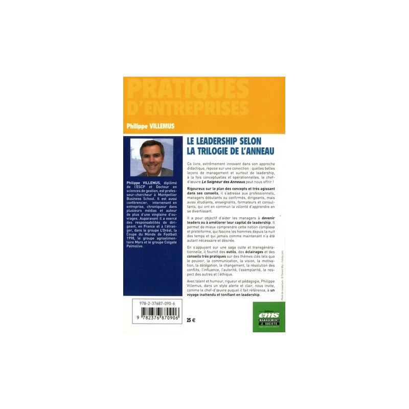 Ce livre, extrêmement innovant dans son approche didactique, repose sur une conviction : quelles belles leçons de management et surtout de leadership, à la fois conceptuelles et opérationnelles, le chef-d'œuvre Le Seigneur des Anneaux peut nous offrir ! Rigoureux sur le plan des concepts et très agissant dans ses conseils, il s'adresse aux professionnels, managers débutants ou confirmés, dirigeants, mais aussi étudiants, enseignants, formateurs et consultants, qui ont en commun la volonté d'apprendre en se divertissant.
