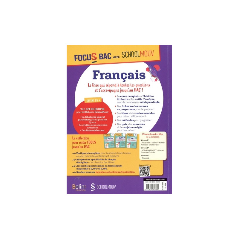 - Des cartes mentales pour retenir l'essentiel. - Des quiz pour te tester. - Des sujets guidés et des sujets complets corrigés pour t'entraîner. - Des conseils pratiques pour bien te préparer aux épreuves écrite et orale. + Inclus : Ton kit de survie pour le Bac avec SchoolMouv > Des vidéos pour mieux comprendre et t'en souvenir à coup sûr. > Un tchat avec un prof particulier pour poser toutes les questions gratuitement pendant 7 jours.