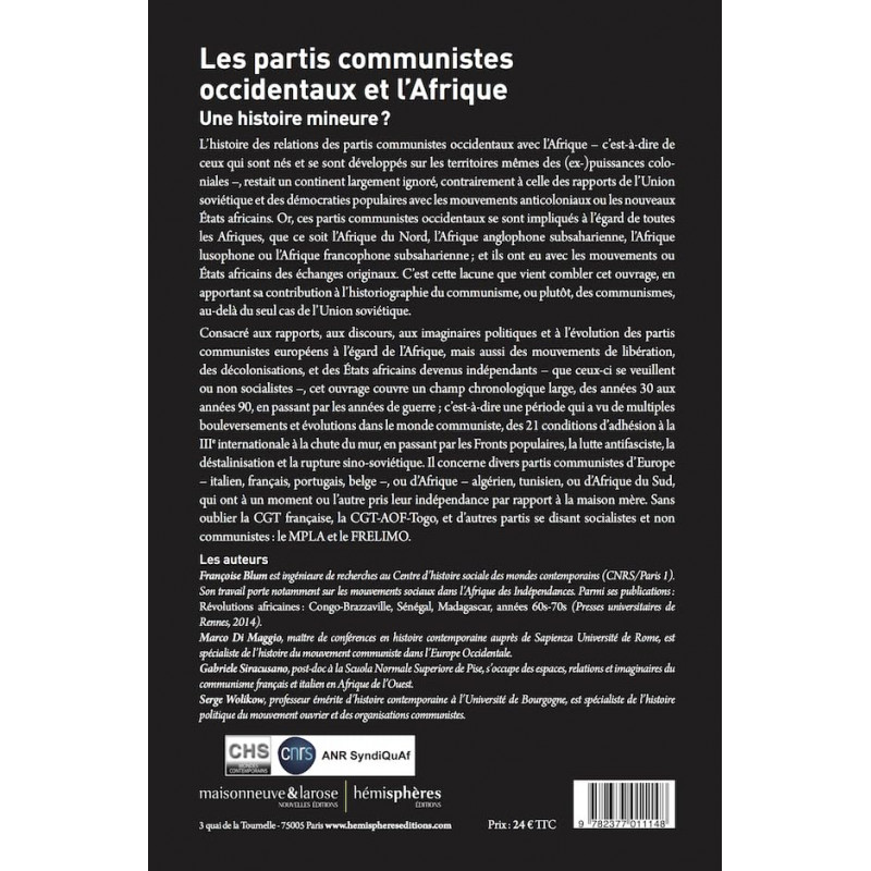 L'histoire des relations des partis communistes occidentaux avec l'Afrique — c'est-à-dire de ceux qui sont nés et se sont développés sur les territoires mêmes des (ex-)puissances coloniales —, restait un continent largement ignoré, contrairement à celle des rapports de l'Union soviétique et des démocraties populaires avec les mouvements anticoloniaux ou les nouveaux Etats africains. Or, ces partis communistes occidentaux se sont impliqués à l'égard de toutes les Afriques, que ce soit l'Afrique du Nord, l'Afrique anglophone subsaharienne, l'Afrique lusophone ou l'Afrique francophone subsaharienne ; et ils ont eu avec les mouvements ou Etats africains des échanges originaux.