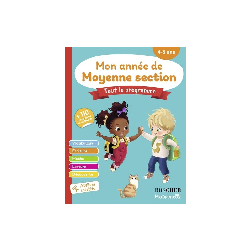 Un cahier complet conçu par une enseignante pour aborder tout le programme de Moyenne section : S'entrainer et progresser avec plus de 60 activités ludiques et variées dans toutes les matières. Développer son imaginaire et sa motricité fine grâce à plus de 20 ateliers créatifs (pour se relaxer, jouer, cuisiner...). Apprendre à se respecter les uns les autres à l'aide de 10 petites règles de savoir-vivre