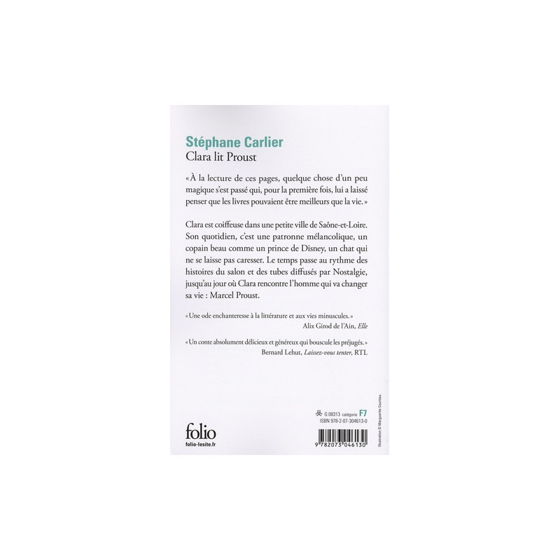 "A la lecture de ces pages, quelque chose d'un peu magique s'est passé qui, pour la première fois, lui a laissé penser que les livres pouvaient être meilleurs que la vie". Clara est coiffeuse dans une petite ville de Saône-et-Loire. Son quotidien, c'est une patronne mélancolique, un copain beau comme un prince de Disney, un chat qui ne se laisse pas caresser. Le temps passe au rythme des histoires du salon et des tubes diffusés par Nostalgie, jusqu'au jour où Clara rencontre l'homme qui va changer sa vie : Marcel Proust.