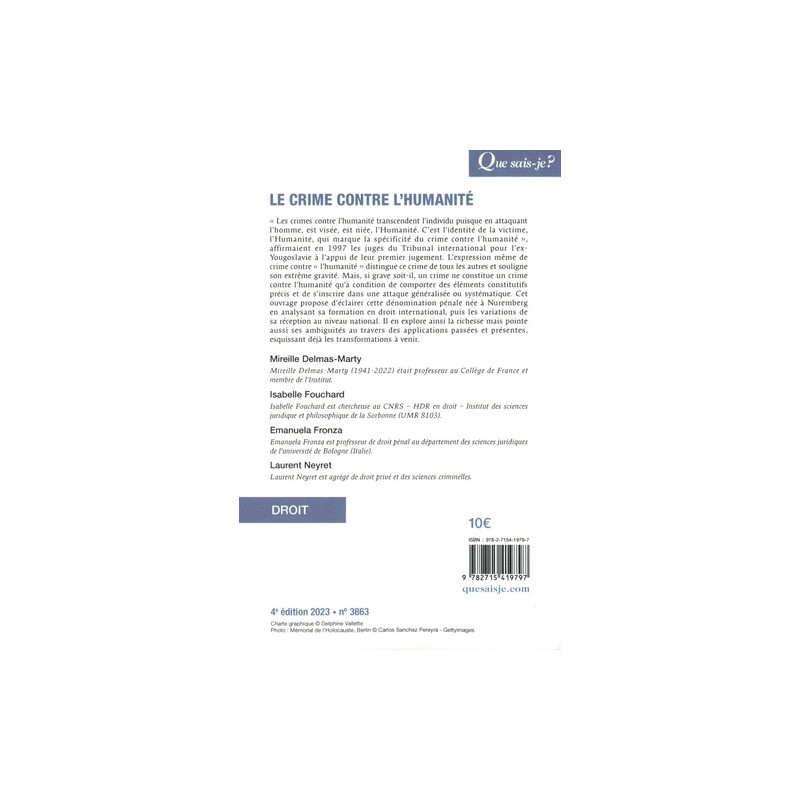 Mais, si grave soit-il, un crime ne constitue un crime contre l'humanité qu'à condition de comporter des éléments constitutifs précis et de s'inscrire dans une attaque généralisée ou systématique. Cet ouvrage propose d'éclairer cette dénomination pénale née à Nuremberg en analysant sa formation en droit international, puis les variations de sa réception au niveau national. Il en explore ainsi la richesse mais pointe aussi ses ambiguïtés au travers des applications passées et présentes, esquissant déjà les transformations à venir.