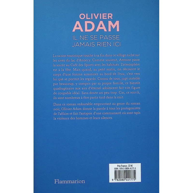 Sans doute un peu trop. Car, ce soir-là, ils sont nombreux à être partis tard dans la nuit. Dans ce roman redoutable empruntant au genre du roman noir, Olivier Adam donne la parole à tous les protagonistes de l'affaire et fait l'autopsie d'une communauté où sont tapis la violence des hommes et leurs silences.