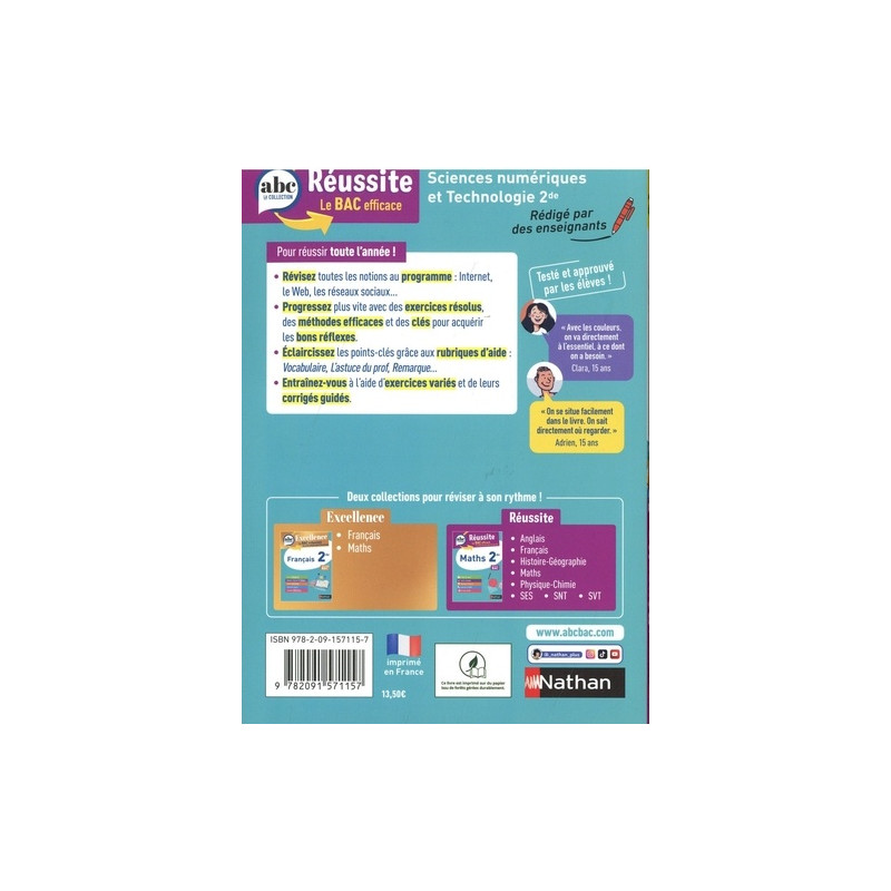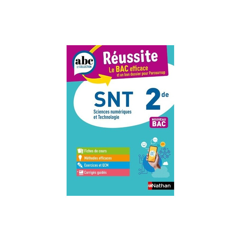 Des fiches de cours, des vidéos, des cartes mentales et quiz, des méthodes efficaces, des exercices et corrigés guidés pour réviser les Sciences numériques et Technologie en 2de ! Conforme à la réforme du Lycée ABC Réussite - SNT 2de Pour réussir toute l'année - Des fiches de cours pour réviser tout le programme. - Des pages révisions express avec des cartes mentales pour retenir en un coup d'œil.