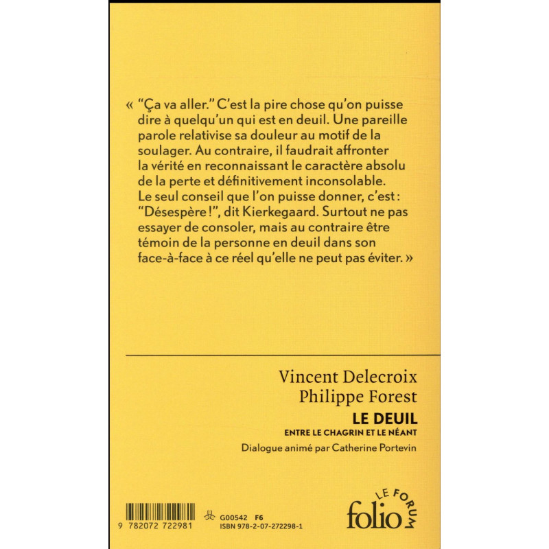 Si la mort est un grand thème de la philosophie, la mort des autres l'est beaucoup moins. L'écrivain Philippe Forest, dont toute l'oeuvre est construite autour de la perte de sa petite fille, et le philosophe Vincent Delecroix, spécialiste de Kierkegaard, remettent le deuil au coeur de l'existence humaine. Leur conversation part d'une colère commune contre l'expression galvaudée "faire son deuil".