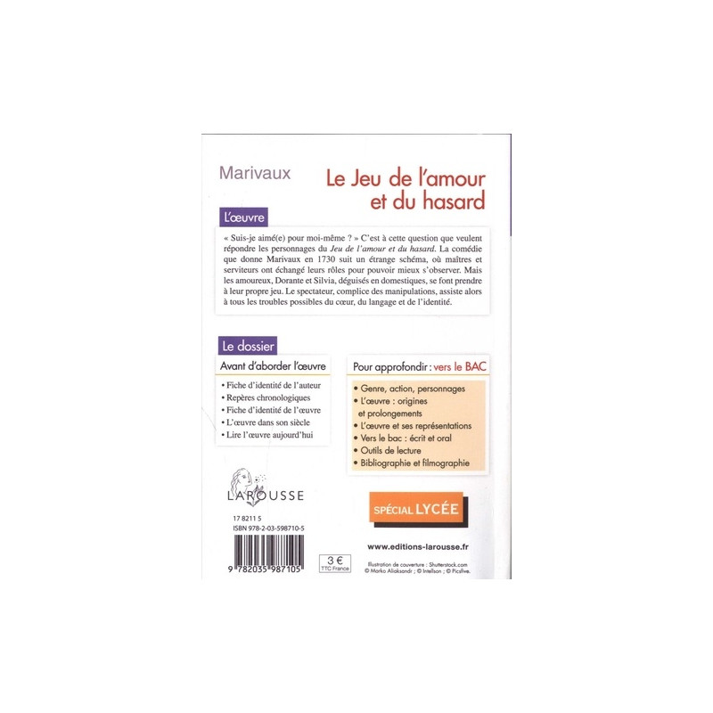 "Suis-je aimé(e) pour moi-même ? " C'est à cette question que veulent répondre les personnages du Jeu de l'amour et du hasard. La comédie que donne Marivaux en 1730 suit un étrange schéma, où maîtres et serviteurs ont échangé leurs rôles pour pouvoir mieux s'observer. Mais les amoureux, Dorante et Silvia, déguisés en domestiques, se font prendre à leur propre jeu. Le spectateur, complice des manipulations, assiste alors à tous les troubles possibles du cœur, du langage et de l'identité.