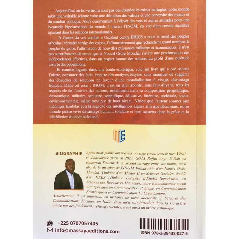 Et comme logeant dans une boule ésotérique, voici un livre qui a osé sonner l'alerte, constater des faits, émettre des analyses étayées, sans manquer de suggérer des ébauches de solutions en faveur d'une mondialisation à visage. davantage humain. Dans cet essai: INOM, il est en effet abordé, sans faux-fuyant, tous les aspects clé de l'univers des nations, notamment dans sa composition géopolitique, économique, militaire, sanitaire, scientifique, éducative, littéraire, ecclésiale, socio- environnementale, même mystique de haut niveau. Vision que l'auteur soumet aux méninges lambdas et à la sagacité des intelligences aiguës afin que désormais, notre monde puisse vivre davantage humain, solidaire et bien heureux dans la grâce et la bénédiction du divin salvateur.