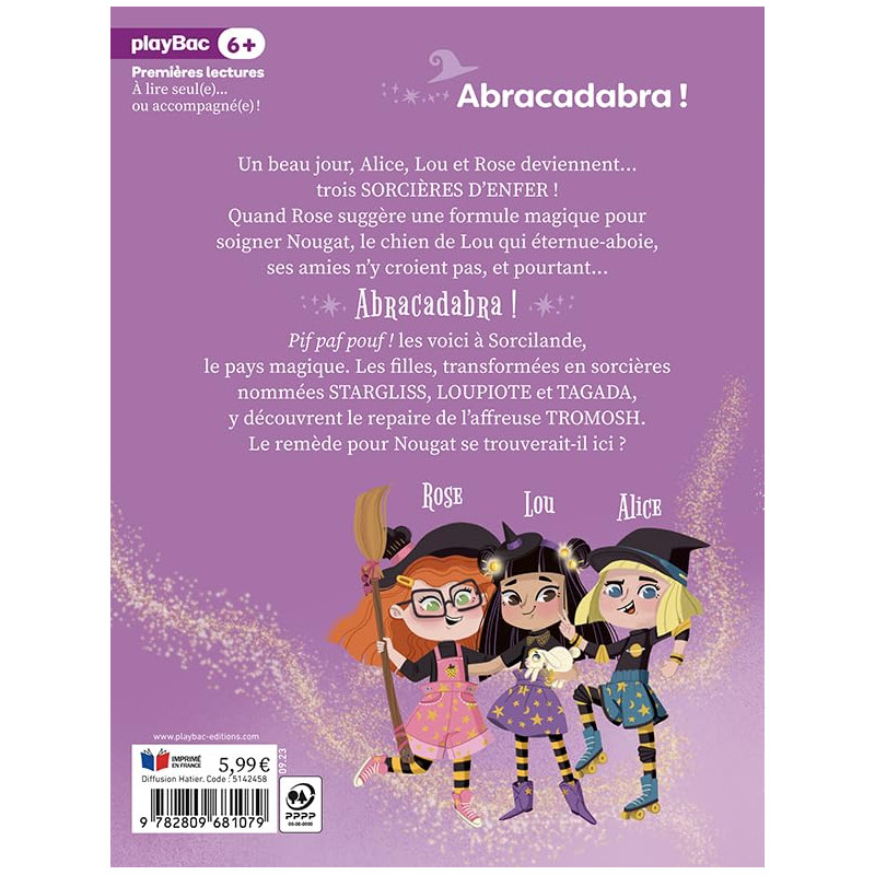Trois amies, Alice, Lou et Rose, essaient en vain de soigner Nougat, le chien de Lou, qui est enrhumé. Rose propose alors d'essayer une formule magique. Alice n'y croit pas deux secondes, et pourtant... Abracadabra, la fenêtre s'ouvre d'un coup sur trois balais prêts à les emmener à Sorcilande, le pays magique. Les filles, relookées en sorcières, y découvrent la cabane de l'affreuse sorcière Tromosh.