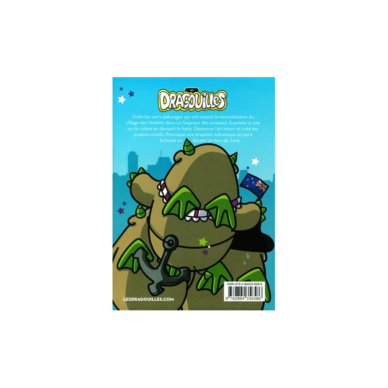 Les Dragouilles sont de drôles de petites créatures s'apparentant à des "monsieur Patate" cornus, affublés d'une queue et d'ailes de démons. Chaque titre de la série regroupe de courtes bandes dessinées mettant en scène ces êtres fabuleux auxquelles se greffent des charades, des jeux, des recettes, des idées de bricolage, des blagues, des devinettes et des rubriques informatives sur des sujets variés, qui permettent ici de glaner quelques menus faits à propos d'Auckland, la ville la plus peuplée de la Nouvelle-Zélande, dont les terres ont servi de théâtre au tournage du ##Seigneur des anneaux##. Ses principaux attraits, sa culture (dont l'art maori) et les mœurs de ses habitants sont au nombre des sujets brièvement survolés