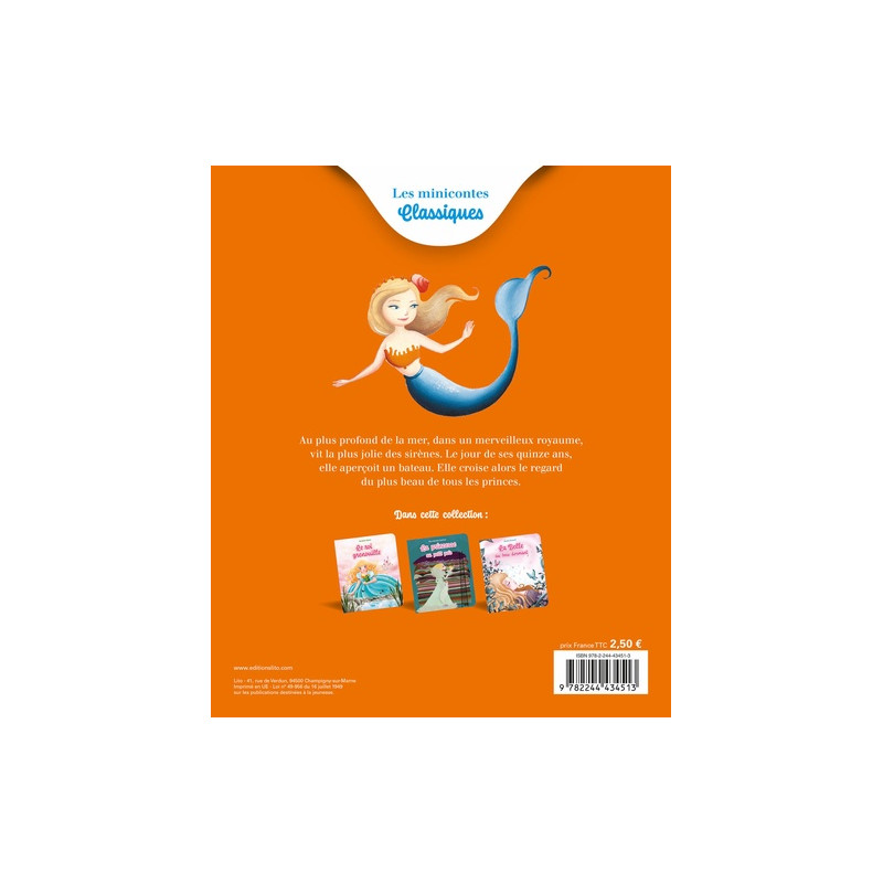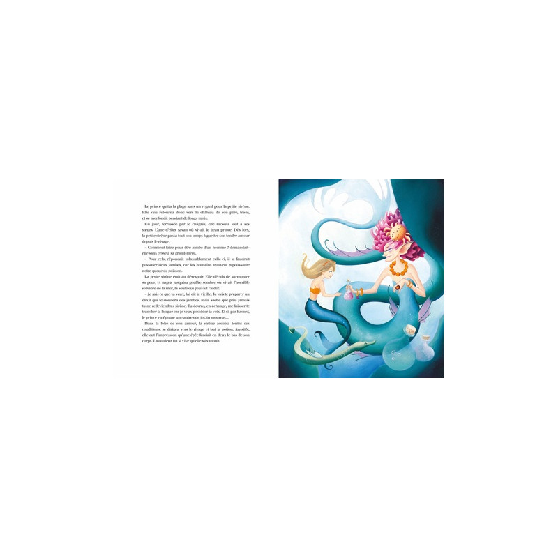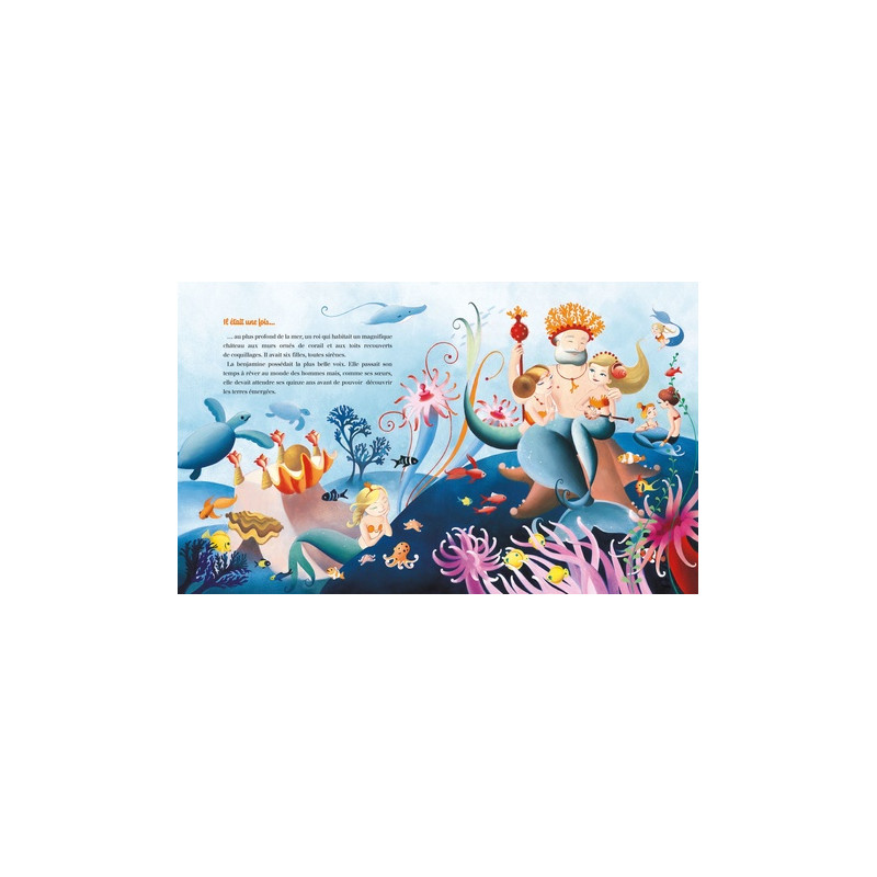 Il était une fois, au plus profond de la mer, un roi qui habitait un château aux murs de corail et aux toits de coquillages. Ses six filles étaient des sirènes. La benjamine, qui était la plus jolie, possédait la plus belle voix. Elle passait son temps à rêver au monde des hommes mais, comme ses sœurs, elle devait attendre ses quinze ans avant d'avoir le droit de découvrir les terres émergées...