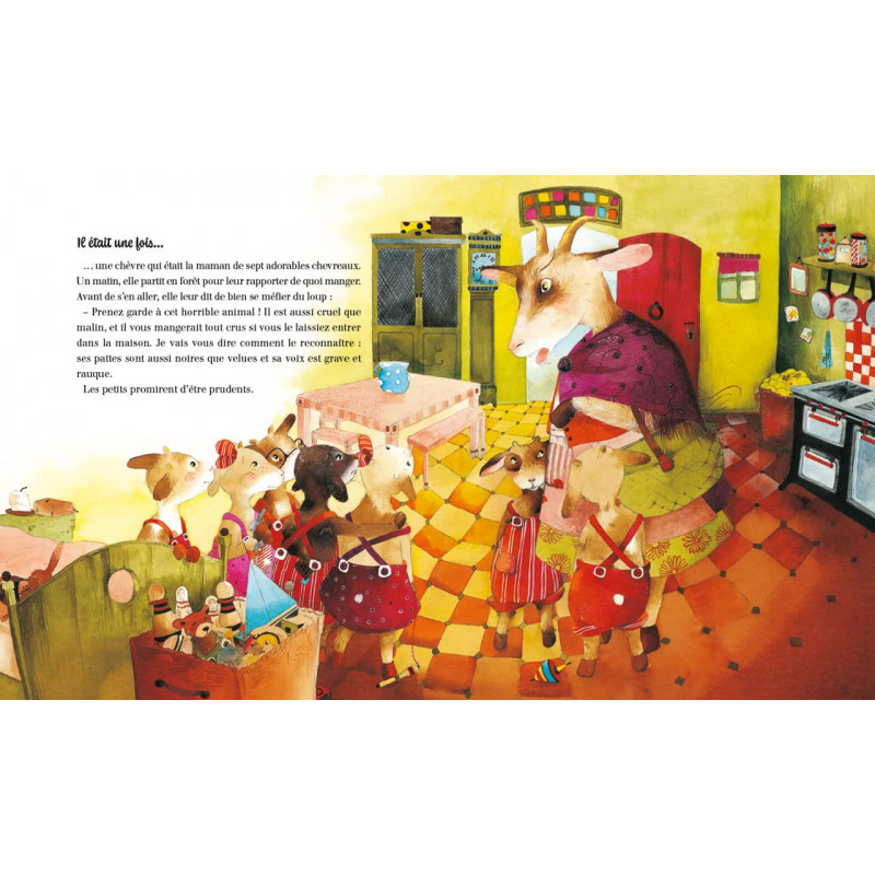 Une chèvre, maman de sept adorables chevreaux, partit en forêt pour chercher de la nourriture. Mais avant de quitter la maison, elle prévint ses petits...