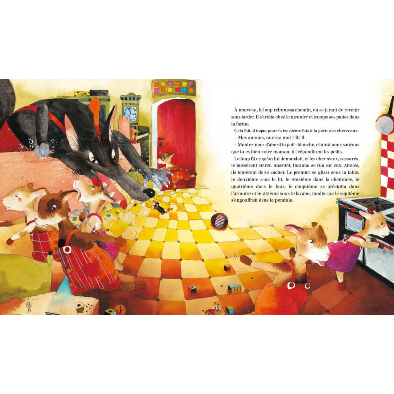 Une chèvre, maman de sept adorables chevreaux, partit en forêt pour chercher de la nourriture. Mais avant de quitter la maison, elle prévint ses petits : - Prenez garde au loup ! Il est aussi cruel que malin ! Les chevreaux écouteront-ils leur maman