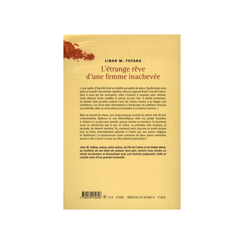 " Mais la beauté de Hawa, son corps presque normal lui valent très tôt des commentaires flatteurs et une bienveillance dont souffre Toumbou (nom qui veut dire " Asticot "), sa plus que jumelle, perçue comme un monstre. Ce tourment muet se transforme peu à peu en haine. La première rêve d'amour, la seconde, de devenir ministre. Or, comment avoir chacune un avenir propre tout en étant charnellement attachée à l'autre par une nature tragique et facétieuse ? La douloureuse route commune de deux soeurs siamoises pourra-t-elle s'ouvrir un jour sur deux destins particuliers ? Au meilleur de ses dons de conteur hors pair, Libar M Fofana revient nous tendre un miroir enchanteur et dramatique avec une histoire poignante et drôle, cruelle mais d'une grande humanité.