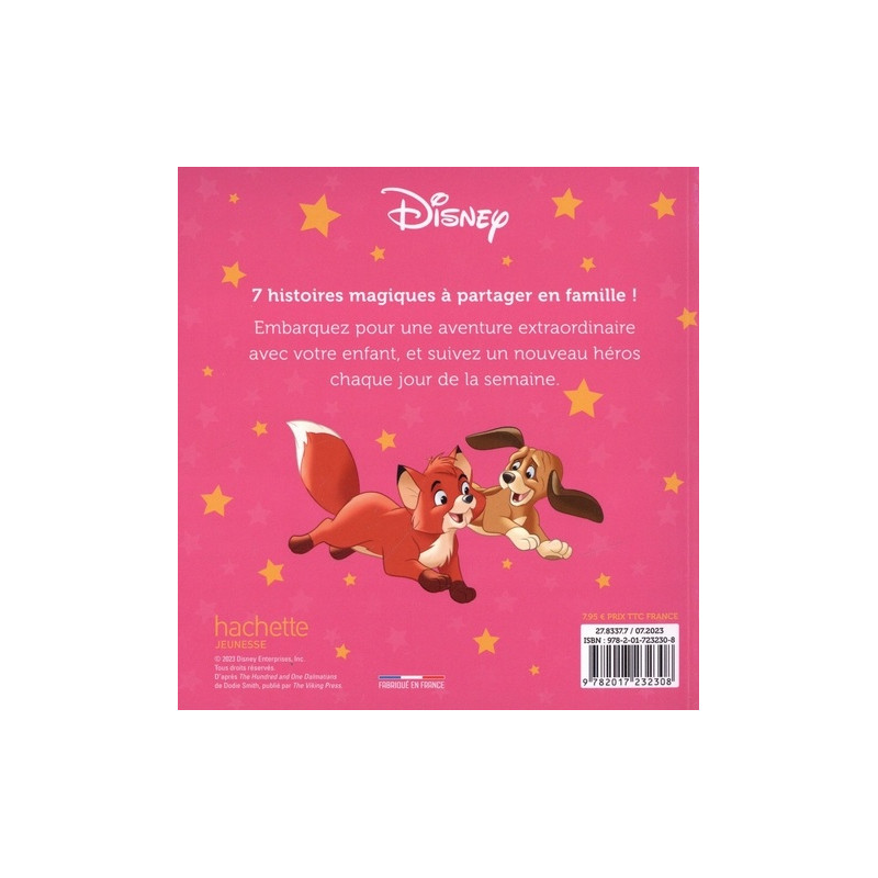 Une histoire chaque soir de la semaine, pour un moment de lecture en compagnie des animaux Disney. - Un recueil de 7 histoires richement illustré et facile à lire, pour vivre les incroyables aventures de Pongo, Simba, Bambi et plein d'autres. - Une maquette claire et efficace, avec des textes courts et rythmés. Contient les histoires : Le Roi Lion - L'histoire du film ; Bambi - L'histoire du film ; Les 101 Dalmatiens - L'histoire du film ; Le Livre de la Jungle - L'histoire du film ; Zootopie - L'histoire du film ; Rox et Rouky - L'histoire du film ; Bernard et Bianca - L'histoire du film ; Dès 4 ans.