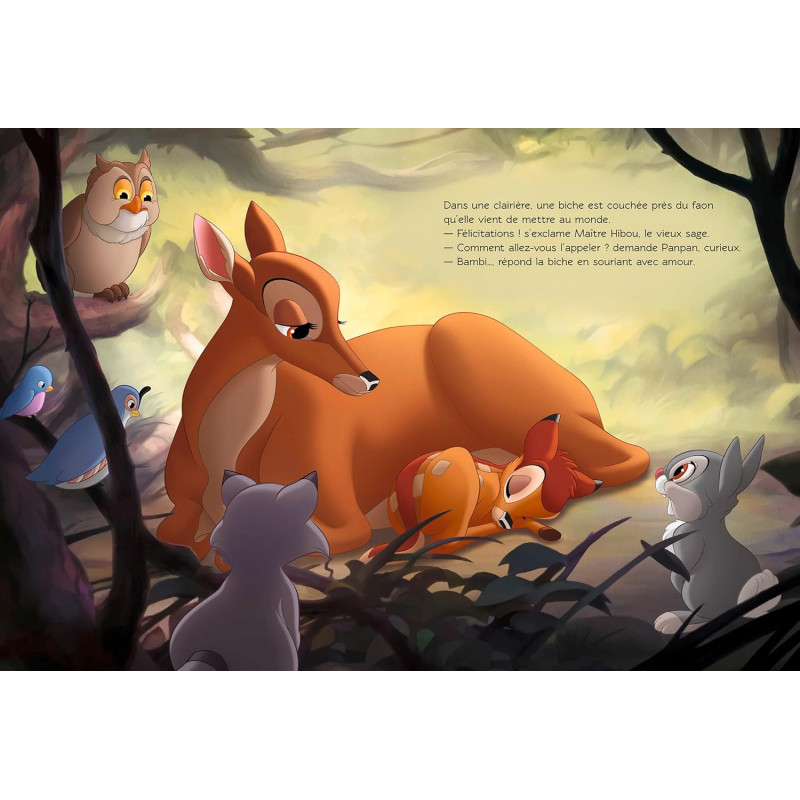 Toute l'histoire du film Bambi dans un album grand format, pour un moment de lecture à partager entre parents et enfants. - L'histoire complète du film avec des textes courts et faciles à lire, rythmés par des dialogues et des images en pleine page. Dès 3 ans. Résumé : C'est jour de fête dans la forêt : un petit faon est né ! Il s'appelle Bambi, et tous les animaux tombent sous son charme. Avec sa maman et son ami, le lapin Panpan, le jeune Bambi va partir à la découverte de la nature.