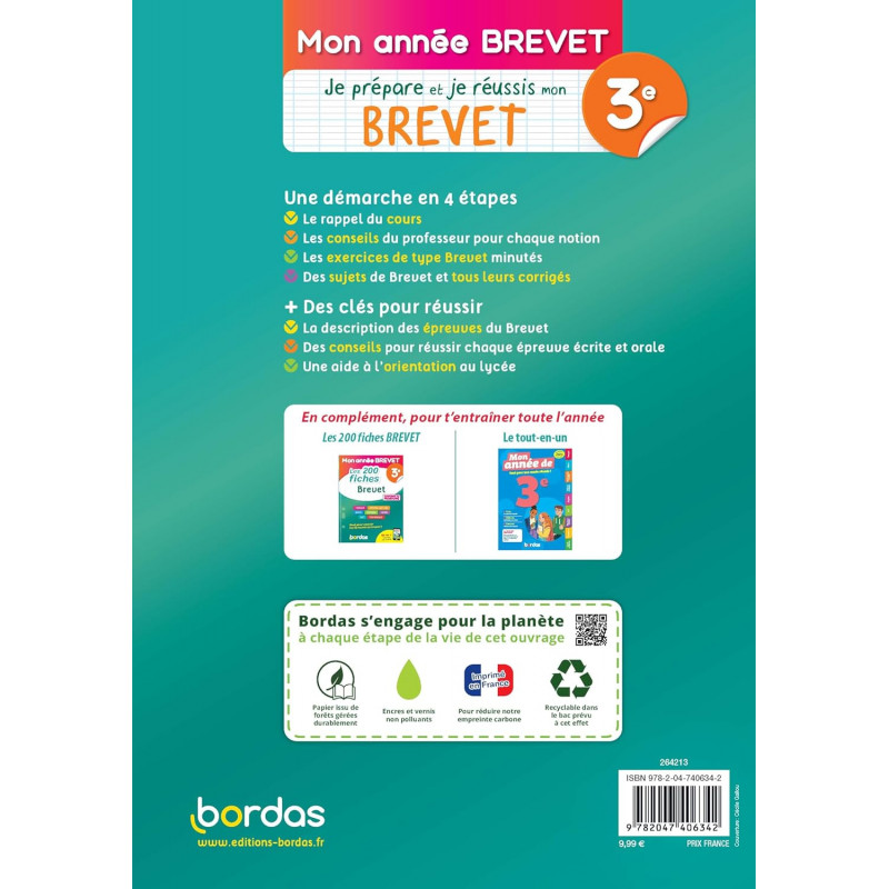 Une démarche en 4 étapes : Le rappel du cours ; Les conseils du professeur pour choque notion ; Les exercices de type Brevet minutés ; Des sujets de Brevet et tous leurs corrigés. + Des clés pour réussir : La description des épreuves du Brevet ; Des conseils pour réussir chaque épreuve écrite et orale ; Une aide à L'orientation au lycée.