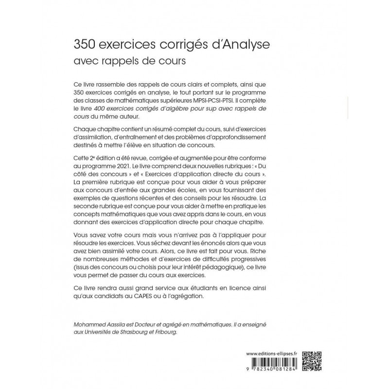 350 exercices corrigés d'Analyse Prépas Sup. Avec rappels de cours 2e édition