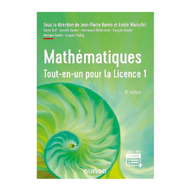 Cet ouvrage de référence couvre, en un seul volume, l'ensemble du programme de mathématiques du niveau L1. Il est composé de vingt-deux modules regroupés en cinq thèmes : notations et vocabulaire, algèbre, géométrie, analyse et enfin probabilités et statistiques. Sa présentation permet à l'étudiant, quel que soit son cursus, de s'initier à son rythme aux thèmes figurant à son programme et de conforter ses acquis. L'étudiant dispose des définitions précises et des énoncés et démonstrations des théorèmes essentiels. Les plus : un cours complet, des modules indépendants, 850 exercices (320 exercices corrigés + 530 énoncés supplémentaires). Le public : étudiants en Licence 1 Mathématiques, étudiants en Licence 1 Informatique, étudiants en Licence 1 Physique. Retrouvez sur dunod.com, sur la page de présentation de l'ouvrage, des indications pour la résolution des exercices supplémentaires ainsi que les solutions détaillées de ces derniers.