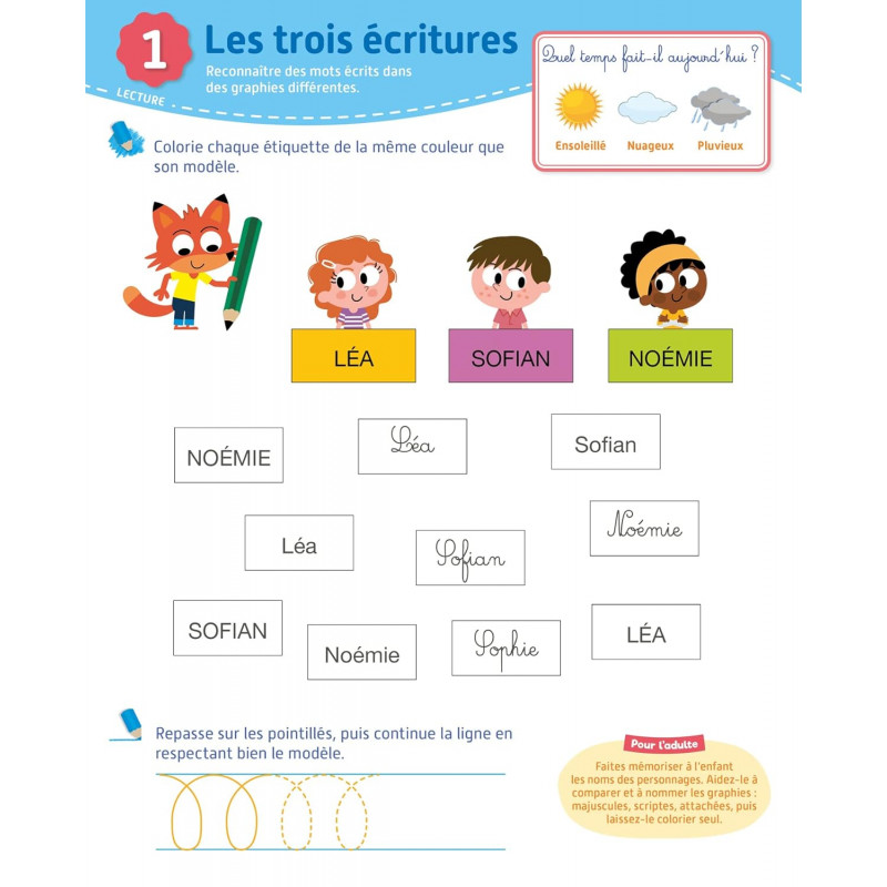 Des activités ludiques et variées pour consolider les premiers apprentissages Ce cahier contient de nombreux dessins à compléter pour apprendre à : bien tenir son crayon ; tracer toutes les formes préalables à l'écriture : lignes, courbes, ronds, guirlandes de boucles... ; maîtriser le geste de l'écriture pour écrire les lettres minuscules cursives (" en attaché ").