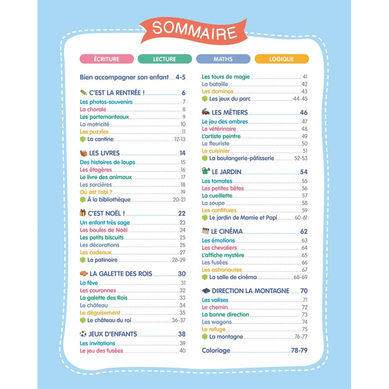 Le cahier idéal pour apprendre, s'éveiller et grandir ! Des thèmes proches de l'univers des enfants : l'école, le jardin, Noël... Des activités simples et ludiques de graphisme, écriture, logique, maths et exploration du monde. De grandes scènes illustrées à observer et à compléter. Une consigne claire pour chaque activité. Des jeux variés et stimulants.