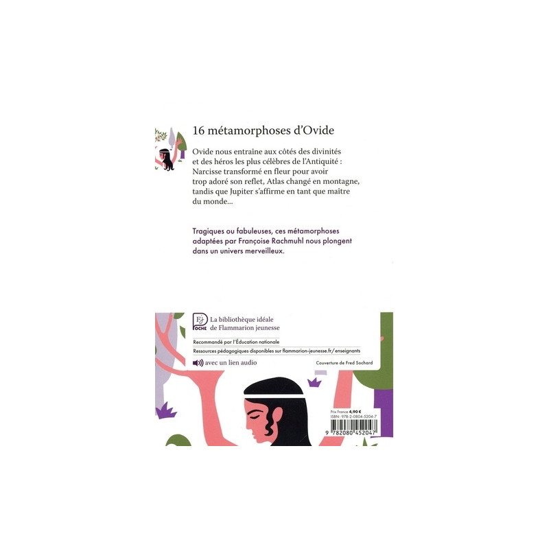 Ovide nous entraîne aux côtés des divinités et des héros les plus célèbres de l'Antiquité : Narcisse transformé en fleur pour avoir trop adoré son reflet, Atlas changé en montagne, tandis que Jupiter s'affirme en tant que maître du monde... Tragiques ou fabuleuses, ces métamorphoses adaptées par Françoise Rachmuhl nous plongent dans un univers merveilleux.