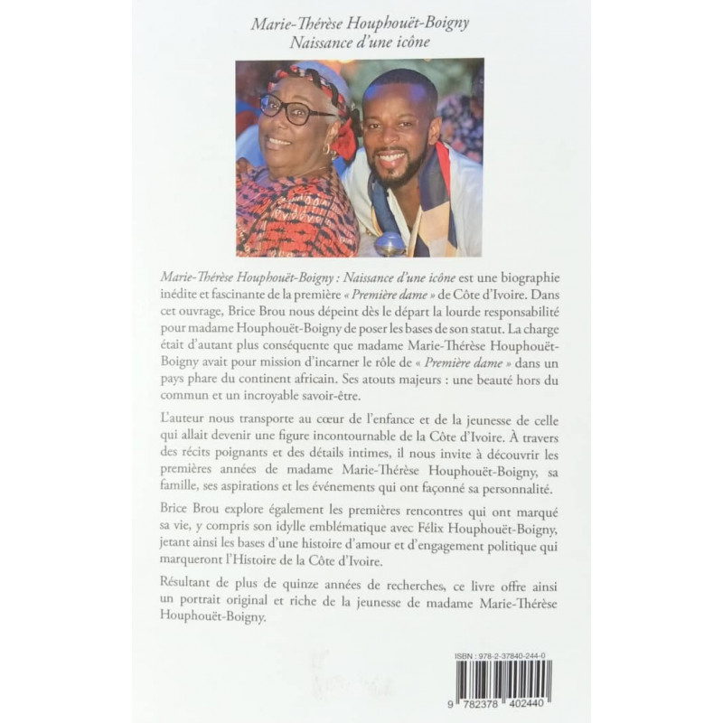 Résultat de plus de quinze années de recherches, ce livre offre ainsi un portrait original et riche de la jeunesse de madame Marie-Thérèse Houphouët-Boigny.