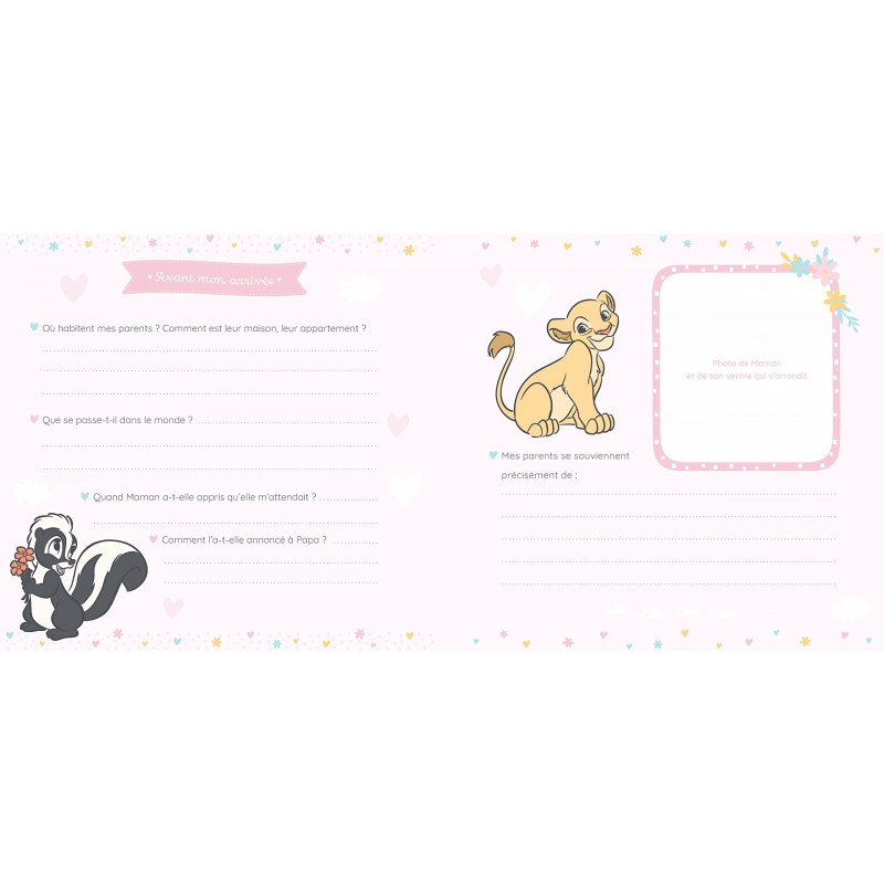 Le livre à remplir Disney pour consigner toutes les premières fois de l'enfant. Un beau livre de naissance, avec un graphisme tendre et doux, avec plein de textes à compléter et de photos à coller pour se souvenir de tous les plus jolis moments des débuts de la vie de l'enfant... Contient : - 1 livre à spirale dans lequel écrire les événements de la naissance et des premiers mois de son enfant. - 1 pochette en papier où ranger des photos et souvenirs.
