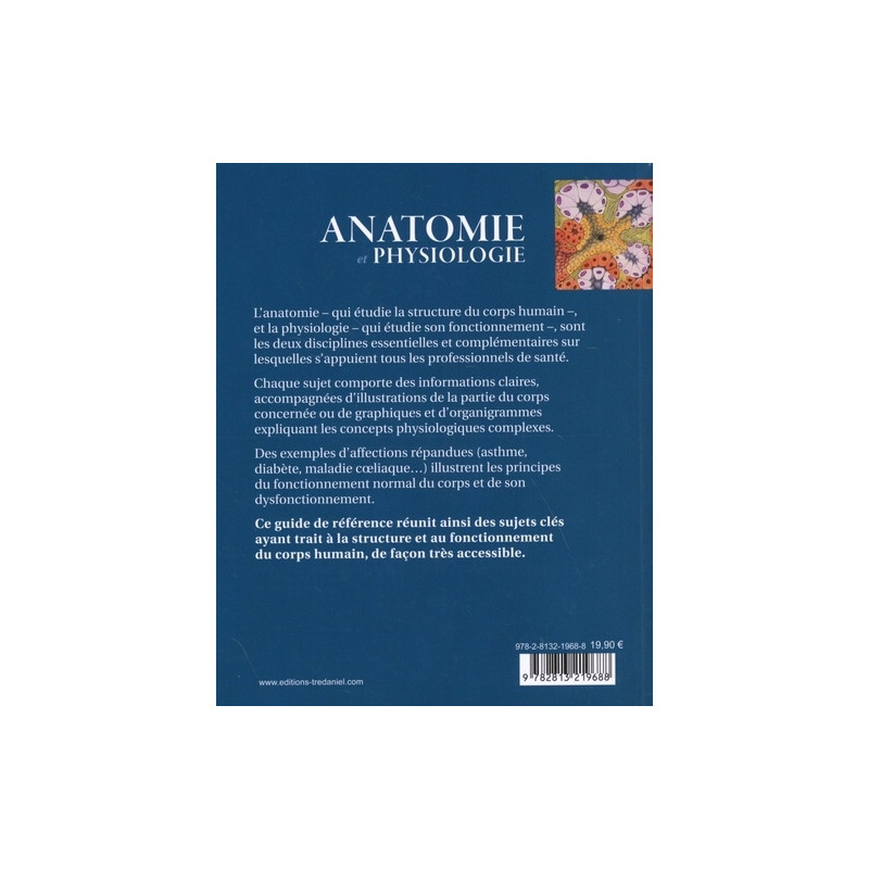 L'anatomie - qui étudie la structure du corps humain -, et la physiologie - qui étudie son fonctionnement -, sont les deux disciplines essentielles et complémentaires sur lesquelles s'appuient tous les professionnels de santé. Chaque sujet comporte des informations claires, accompagnées d'illustrations de la partie du corps concernée ou de graphiques et d'organigrammes expliquant les concepts physiologiques complexes. Des exemples d'affections répandues (asthme, diabète, maladie cœliaque...) illustrent les principes du fonctionnement normal du corps et de son dysfonctionnement. Ce guide de référence réunit ainsi des sujets clés ayant trait à la structure et au fonctionnement du corps humain, de façon très accessible.