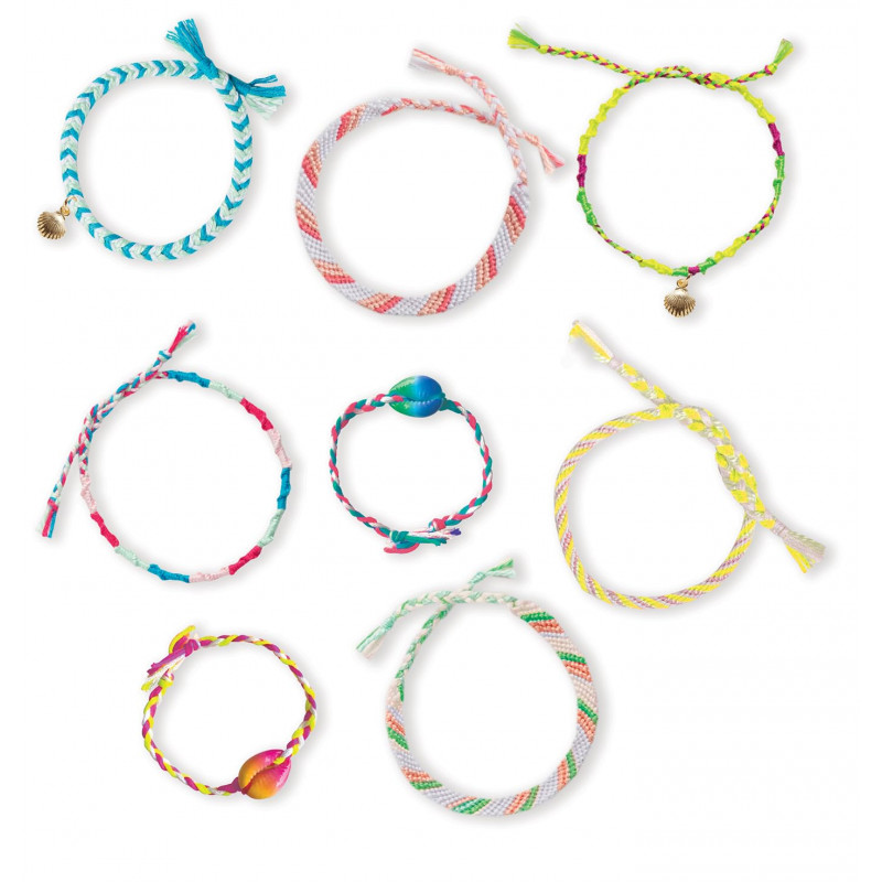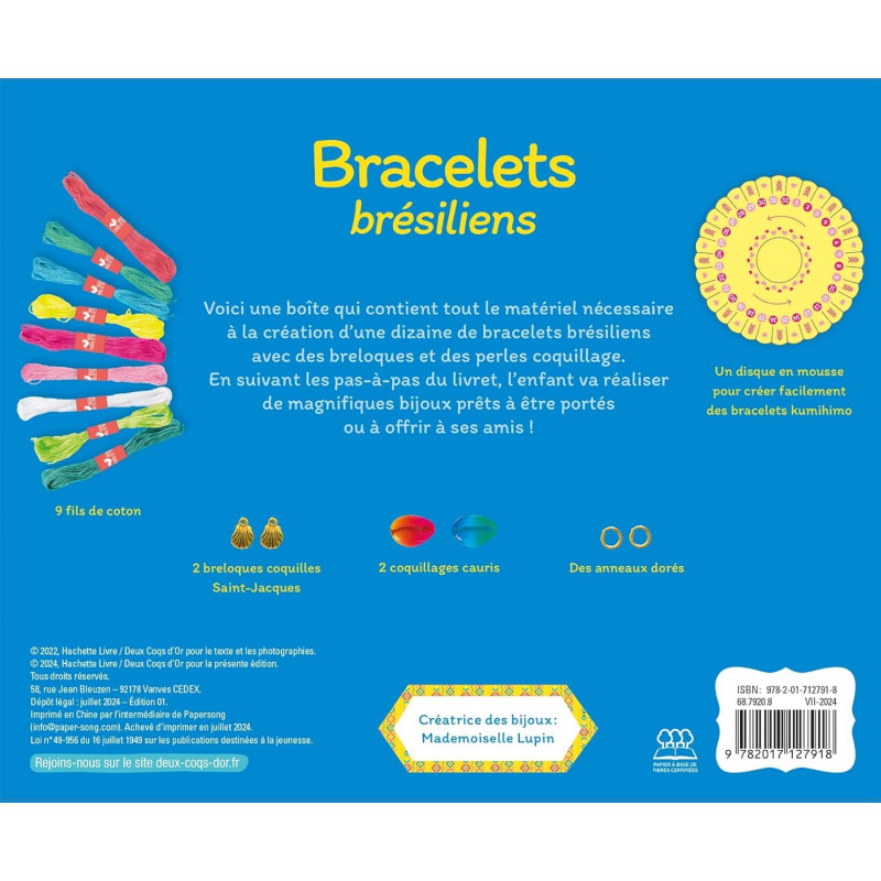 Voici une boîte qui contient tout le matériel nécessaire à la création d'une dizaine de bracelets brésiliens avec des breloques et des perles coquillage. En suivant les pas-à-pas du livret, l'enfant va réaliser de magnifiques bijoux prêts à être portés ou à offrir à ses amis !