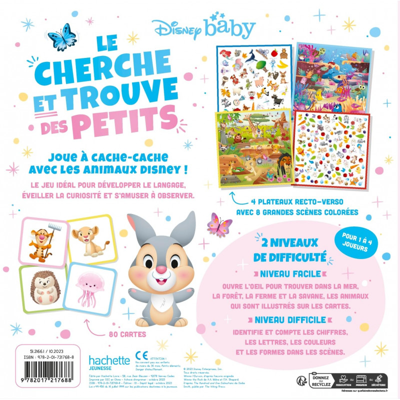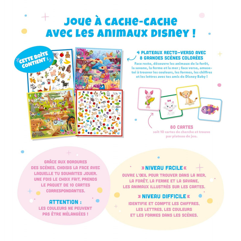 - Joue à cache-cache avec les animaux Disney ! Le jeu idéal pour développer le langage, éveiller la curiosité et s'amuser à observer, avec deux niveaux de difficulté.