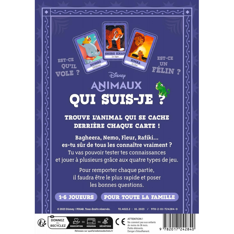 Bagheera, Nemo, Bambi et leurs amis !Seul : Découvre quel est ton animal totem, celui qui te représente le plus, en piochant une carte au hasard. Ensuite réfère toi au livret pour tout savoir sur ce personnage, sa personnalité et une caractéristique de son espèce.À plusieurs : Essaie de faire deviner l'animal que tu as tiré aux autres joueurs, en répondant à leurs questions uniquement par oui ou par non. Tu peux également mimer ou dessiner !50 cartes, un livre, 4 types de jeu possibles, des règles du jeu.De 5 ans à 99 ans... à jouer entre amis ou en famille !