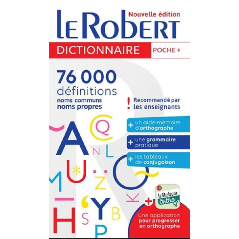 Une nouvelle édition du dictionnaire de référence dans un format pratique avec une couverture renforcée et recommandé par les enseignants. LE DICTIONNAIRE DE REFERENCE DANS UN FORMAT PRATIQUE Un dictionnaire de langue française 66 000 définitions De nombreux exemples d'emploi Les niveaux de langue (littéraires, familier, argotique...) Les synonymes et les contraires Les expressions et locutions Pour écrire sans fautes Toute la conjugaison Une grammaire complète Un aide-mémoire d'orthographe Pour développer sa culture générale 10 000 noms propres (personnes, lieux, évènements) dans tous les domaines : histoire, géographie, arts, science, politique... Autorisé au brevet des collèges pour le sujet de rédaction. INCLUS avec ce dictionnaire : L'APPLICATION LE ROBERT ORTHO pour progresser en orthographe Plus de 1 000 questions Un suivi de son score Configurations requises pour accéder à l'application LE ROBERT ORTHO Accessible sur Google Play Store et l'App Store. Recherchez et téléchargez l'application gratuite Le Robert Ortho . Nécessite une version équivalente ou ultérieure à Android 5. 0 ou iOS 12. En cas de problème, contactez notre service Relation clients : relation. clients@lerobert. com. Dictionnaire éligible au Pass Culture.