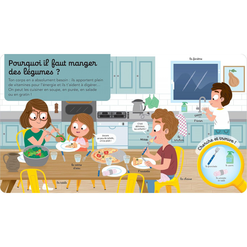 Un livre qui répond aux questions des tout-petits sur l'alimentation ! Un livre qui combine apprentissage et jeu pour explorer les bases d'une alimentation saine avec des explications simples : l'origine des aliments, l'importance des légumes, la découverte des goûts etc. Sur chaque page, un petit jeu de cherche et trouve pour enrichir le vocabulaire !