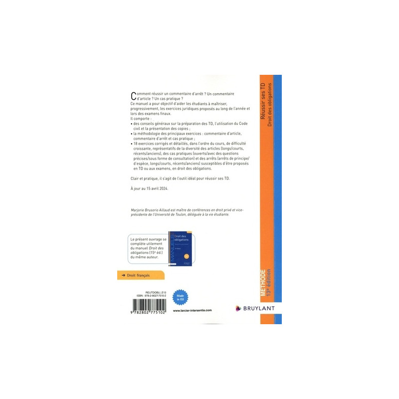 Un précieux outil pour appréhender les exercices juridiques L'ouvrage offre aux étudiants un précieux outil pour appréhender les exercices juridiques, apprécier les textes, trouver la documentation utile, organiser les connaissances.
