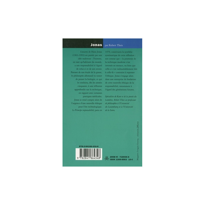 L'œuvre de Hans Jonas (1903-1993) est portée par une idée maîtresse : l'homme, en tant qu'habitant du monde, a une responsabilité à l'égard de celui-ci et de son avenir. Partant de son étude de la gnose, le philosophe allemand va tenter de penser la biologie, ce qui le conduira, dès les années cinquante, à une réflexion approfondie sur la technique, en rapport … L'œuvre de Hans Jonas (1903-1993) est portée par une idée maîtresse : l'homme, en tant qu'habitant du monde, a une responsabilité à l'égard de celui-ci et de son avenir. Partant de son étude de la gnose, le philosophe allemand va tenter de penser la biologie, ce qui le conduira, dès les années cinquante, à une réflexion approfondie sur la technique, en rapport avec certaines pratiques médicales. Jonas se rend compte alors de l'urgence d'une nouvelle éthique pour l'ère technologique. Le Principe responsabilité, paru en 1979, constituera la synthèse systématique de cette réflexion : son constat que "la promesse de la technique moderne s'est inversée en menace, ou bien que celle-ci s'est indissolublement liée à celle-là" contraint à repenser l'éthique. Jonas s'engage alors dans une entreprise de fondation de cette nouvelle éthique de la responsabilité, notamment à l'égard des générations futures.