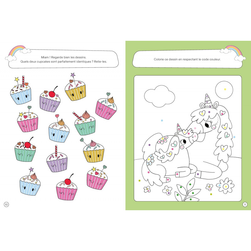 Toi aussi, tu aimes les licornes ? Alors, ouvre vite ce livre ! Les adorables licornes de ce livre te réservent toutes de chouettes jeux. Bon amusement !