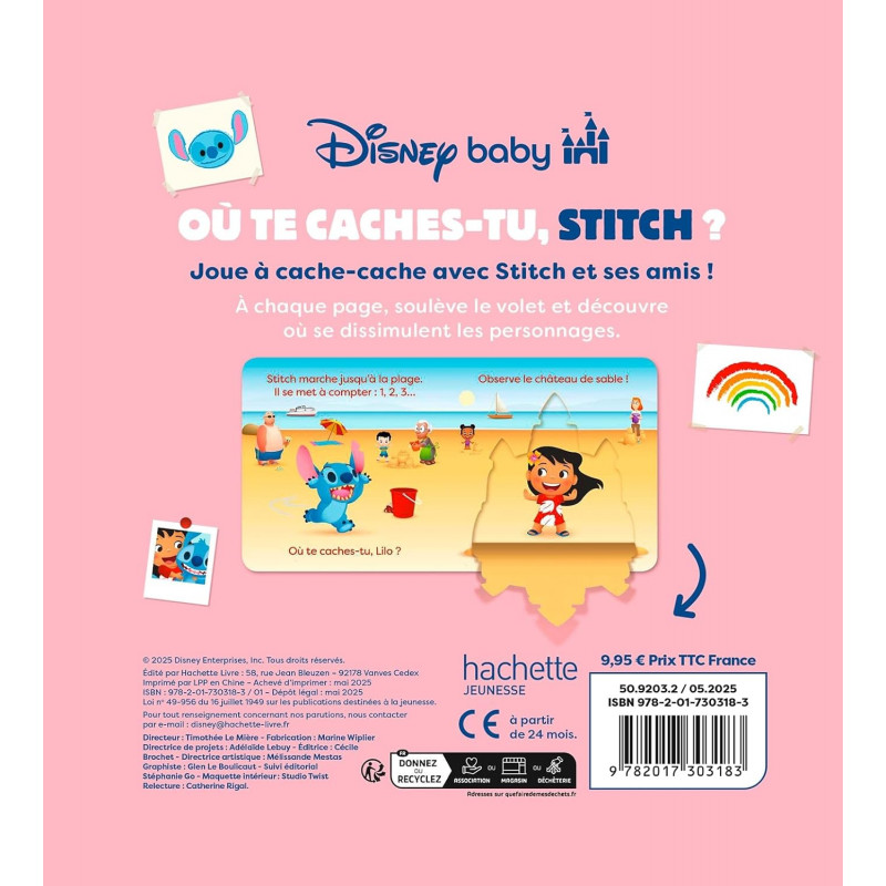 Joue à cache-cache avec stitch et ses amis ! a chaque page soulève le volet et découvre ou se dissimulent les personnages .