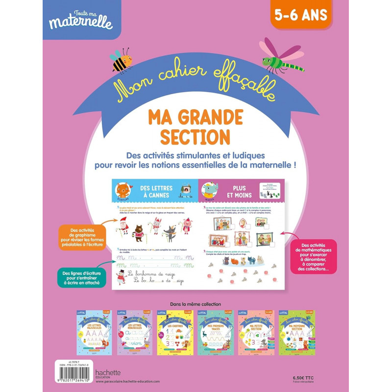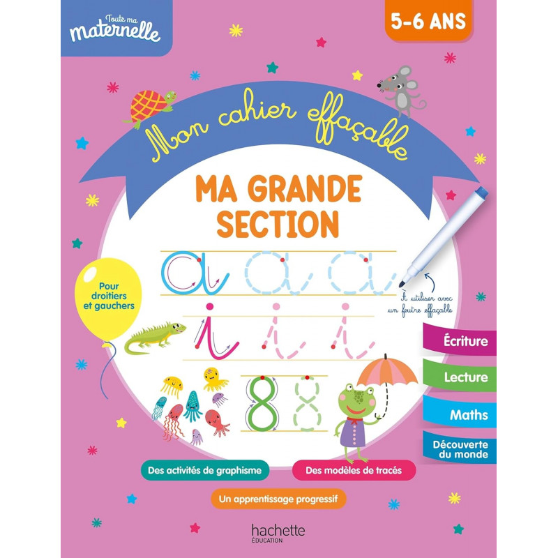 Un cahier effaçable ludique et progressif pour accompagner son enfant tout au long de l'année ! Des activités simples et ludiques, conformes au programme de Grande Section de maternelle. Une initiation progressive à l’écriture et à la lecture. Un cahier réutilisable à l’infini.
