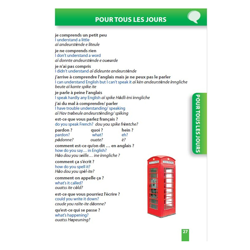 Un ouvrage indispensable pour communiquer dans les pays anglophones, avec tous les mots et expressions pour faciliter votre voyage et vous permettre de vous exprimer dans toutes les situations : la prononciation de tous les mots et expressions, des informations grammaticales, un dictionnaire bilingue de 5000 mots. Des conseils pratiques pour vous familiarise… Un ouvrage indispensable pour communiquer dans les pays anglophones, avec tous les mots et expressions pour faciliter votre voyage et vous permettre de vous exprimer dans toutes les situations : la prononciation de tous les mots et expressions, des informations grammaticales, un dictionnaire bilingue de 5000 mots. Des conseils pratiques pour vous familiariser avec la culture anglo-saxonne : des encadrés culturels, un guide touristique, les plans de Londres et New York.