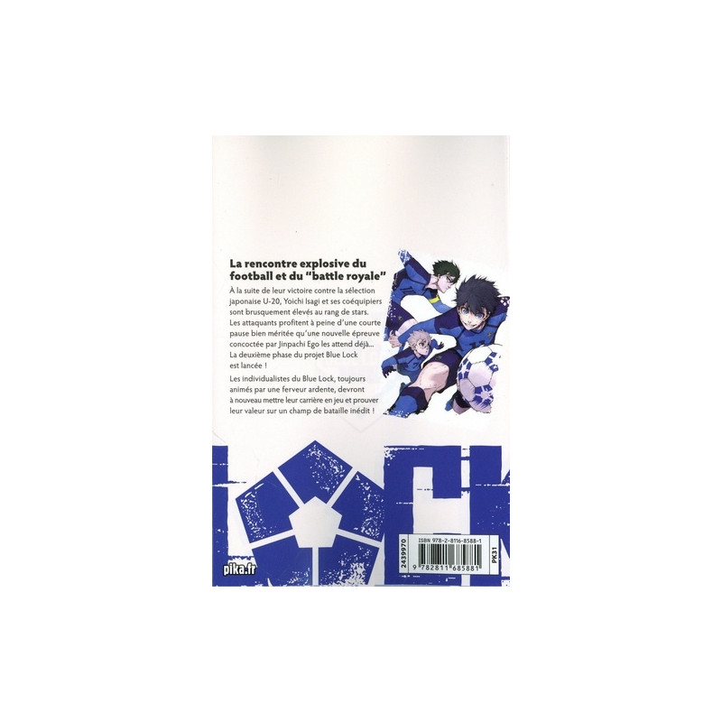 A la suite de leur victoire contre la sélection japonaise U-20, Yoichi Isagi et ses coéquipiers sont brusquement élevés au rang de stars. Les attaquants profitent à peine d'une courte pause bien méritée qu'une nouvelle épreuve concoctée par Jinpachi Ego les attend déjà... La deuxième phase du projet Blue Lock est lancée ! Les individualistes du Blue Lock, toujours animés par une ferveur ardente, devront à nouveau mettre leur carrière en jeu et prouver leur valeur sur un champ de bataille inédit !