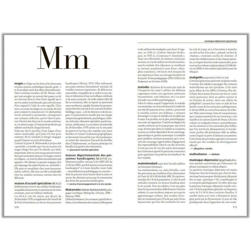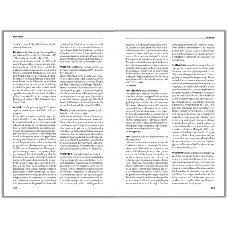 Ce dictionnaire présente à travers plus de 1000 articles : - 900 concepts fondamentaux, définis et expliqués, qui recouvrent les secteurs de recherche les plus variés : psychologie clinique, psychologie expérimentale, neuropsychologie, psychanalyse, psychologie de l'enfant, psychiatrie... - 100 monographies de psychologues, pédagogues, psychanalystes, … Ce dictionnaire présente à travers plus de 1000 articles : - 900 concepts fondamentaux, définis et expliqués, qui recouvrent les secteurs de recherche les plus variés : psychologie clinique, psychologie expérimentale, neuropsychologie, psychanalyse, psychologie de l'enfant, psychiatrie... - 100 monographies de psychologues, pédagogues, psychanalystes, médecins, neurologues... - Plusieurs schémas et illustrations explicitant les concepts essentiels. A la fois théorique et pratique, cet ouvrage offre les bases d'une initiation à la psychologie et une référence sérieuse, documentée, adaptée aux exigences des spécialistes et aux besoins du grand public.