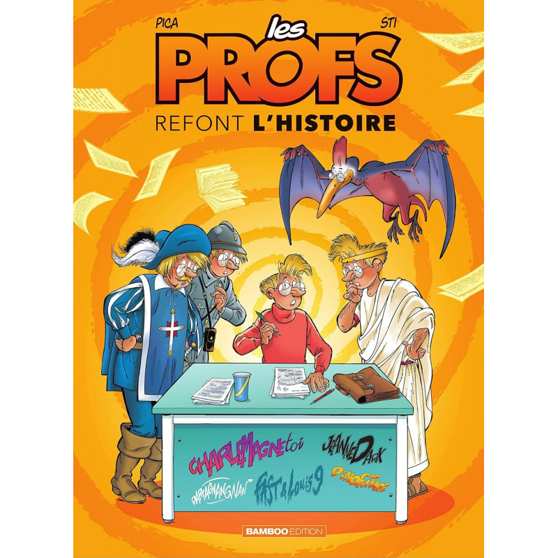 Les Profs effacent le tableau noir de l'histoire et la réécrivent à leur façon, délirante et décalée. Les Profs du célèbre Lycée Fanfaron sont comme les virus : ils mutent au fil du temps, s'adaptant aux époques, indestructibles ! Dans ce nouveau tome des Profs refont l'histoire, ils sont au sommet de leur nullité : à ce niveau d'incompétence, ce n'est plus une mauvaise habitude, c'est un style de vie ! Avec eux, on se promène dans la Grèce Antique, Boulard rencontre Charlemagne (vous imaginez...) et la paix mondiale rate une belle occasion pendant la Grande Guerre. Quant à Platon, il y perd son latin ! Alors montez à bord de la machine à remonter le temps de l'Éducation nationale !