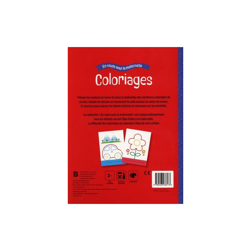 Prépare tes couleurs et lance-toi dans la réalisation des nombreux coloriages de ce livre. Colorie les dessins en respectant le code couleur ou selon tes envies. Tu pourras aussi exercer tes talents d'artiste en repassant sur les pointillès.