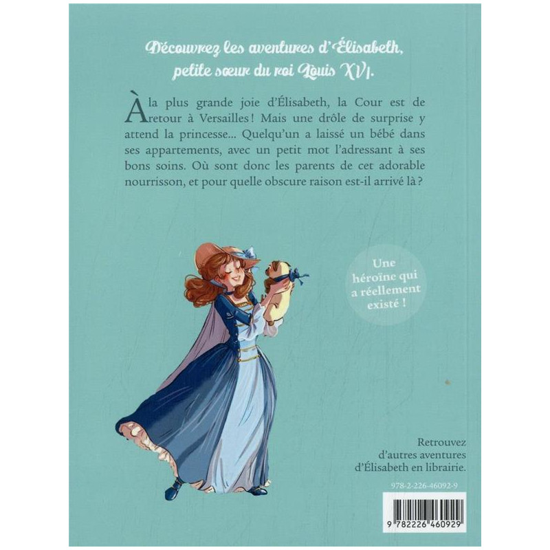 Pour la plus grande joie d'Élisabeth, la Cour est de retour à Versailles ! Quel plaisir de retrouver ses appartements après ces longs mois pluvieux passés à Fontainebleau ! Mais une drôle de surprise attend la princesse dans sa bibliothèque... Quelqu'un y a déposé un bébé, avec un petit mot qui l'adresse à ses bons soins ! Émue, Élisabeth cherche à comprendre. Elle remonte avec ses amis la piste des parents de l'enfant... Qu'est-ce qui a donc bien pu leur arriver pour qu'ils se séparent ainsi, à contrecoeur semblerait-il, du petit Adrien.